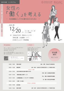 「女性の「働く」を考えるー生活基盤としての仕事を支えるためにー」をテーマに、シンポジウムを開催いたします。